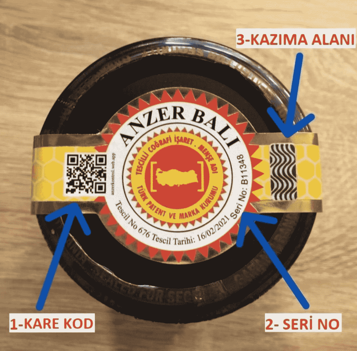 Coğrafi Tescilli Anzer Ballarında Coğrafi Amblem ve Anzer Balı ifadesi bulunması zorunludur.